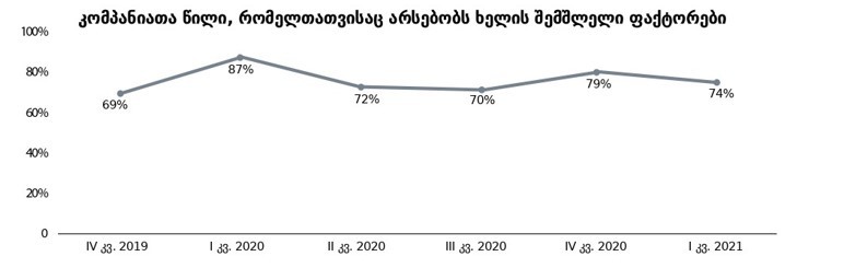 აღსანიშნავია, რომ 2020 წლის ოთხივე კვარტალში, ხელის შემშლელ ფაქტორებს შორის პირველ ადგილს ყოველთვის მოთხოვნის სიმცირე იკავებდა. მოცემულ კვარტალში კი შემაფერხებელ ფაქტორებს შორის პირველი ადგილი სამართლებრივმა და ადმინისტრაციულმა ბარიერებმა დაიკავა.