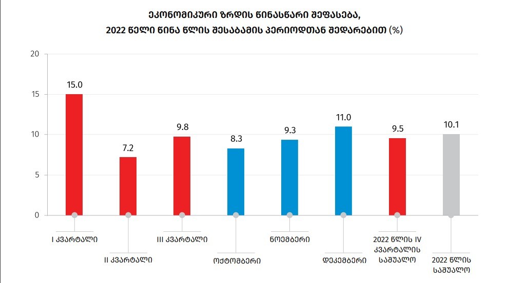 2022 წელს საქართველოს ეკონომიკა საშუალოდ 10.1%-ით გაიზარდა