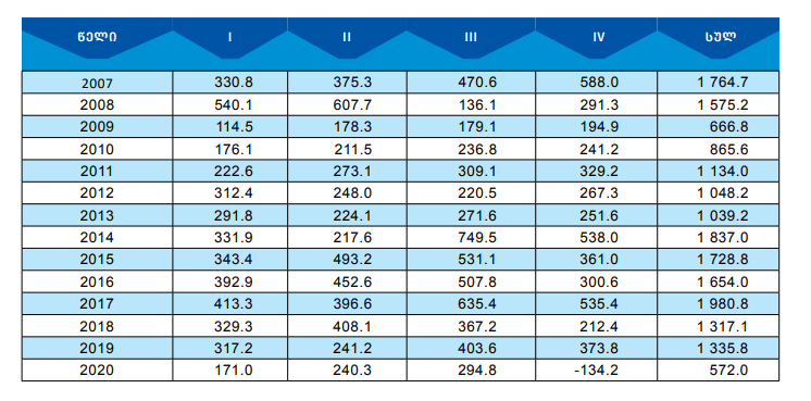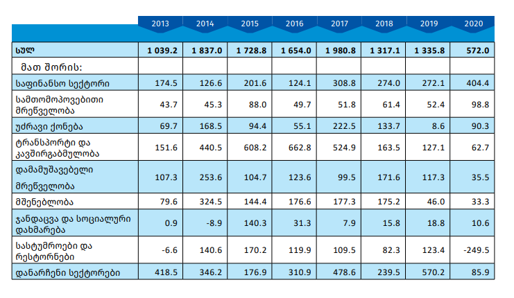 დაზუსტებული მონაცემებით, 2020 წელს საქართველოში მხოლოდ $572 მლნ-ის FDI შემოვიდა
