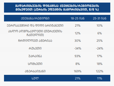 გზავნილები ევროკავშირიდან და დიდი ბრიტანეთიდან 10%-ით არის გაზრდილი, ახლო აღმოსავლეთიდან 6%-ით.