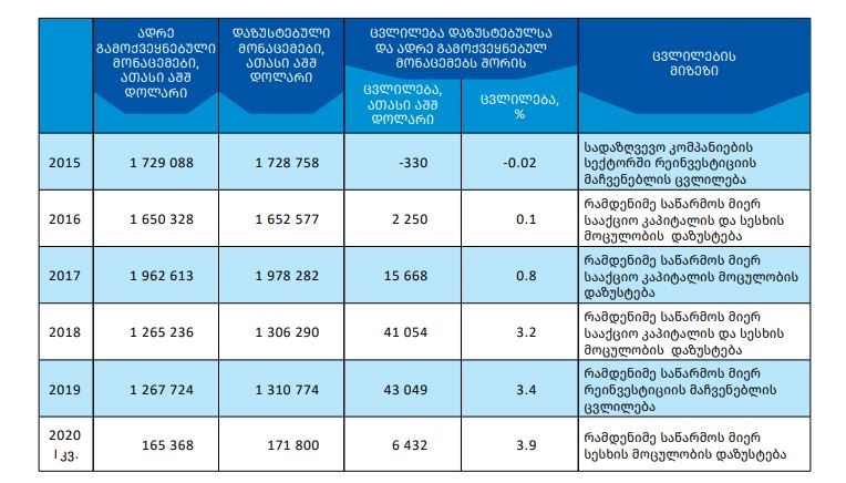 საქსტატმა დააზუსტა საქართველოში განხორციელებული პირდაპირი უცხოური ინვესტიციების მოცულობა 2015 წლიდან. ასევე განმარტა ცვლილებების გამომწვევი ძირითადი მიზეზები: