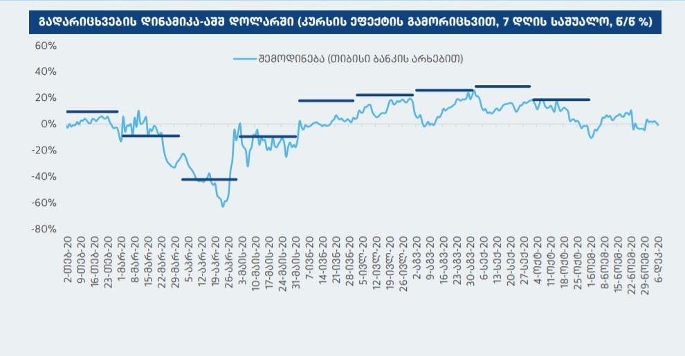 თიბისი კაპიტალის კვირის მიმოხილვის მიხედვით, 30 ნოემბერი-6დეკემბრის კვირაში ფულადი შემოდინებები წინა კვირასთან შედარებით გაიზარდა და წინა წლის ნიშნულს უტოლდება.